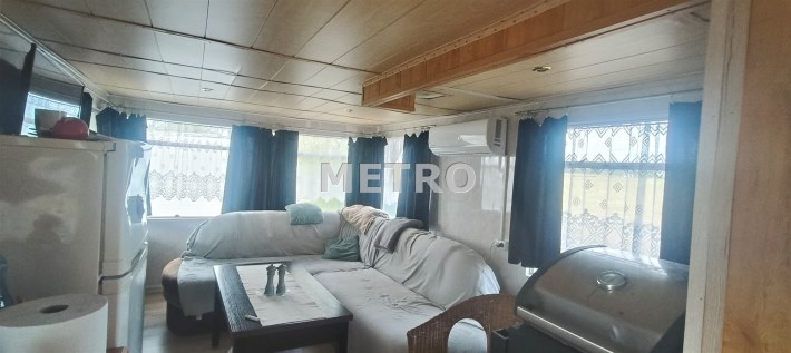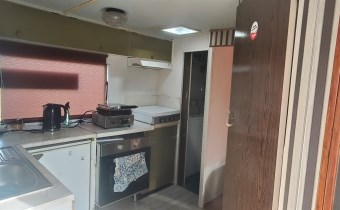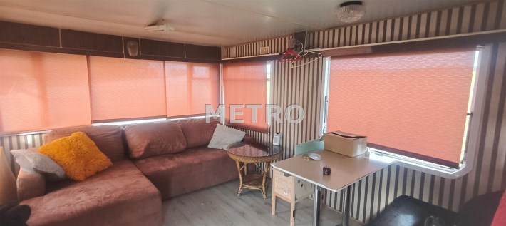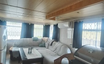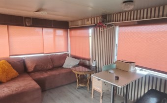 Jeden z domków ocieplony, z tarasem, wyposażony w klimatyzator, drugi typowy kontener.