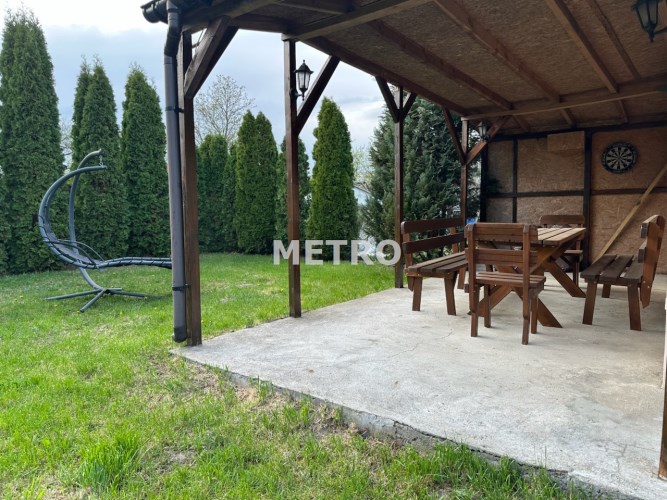 Domek gustownie wykończony i wyposażony. W kuchni zabudowa, lodówka, zmywarka, szafy. W ogrodzie huśtawka, meble ogrodowe i inne sprzęty ogrodowe.