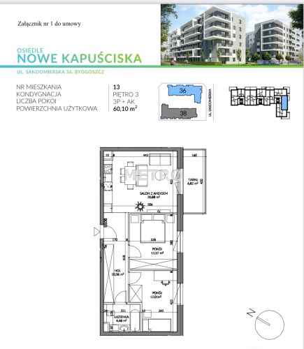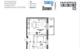 3 pokoje 3 piętro 60,10 m2 11 297,84 zł/m2