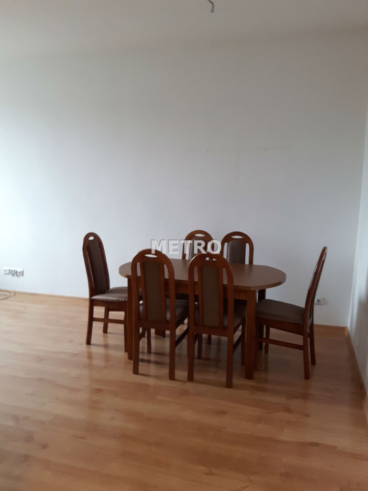 W pokojach (19m2/12m2) widoczne na zdjęciach dwie kanapy i stół z krzesłami.