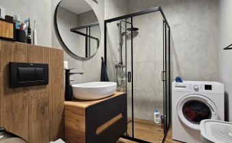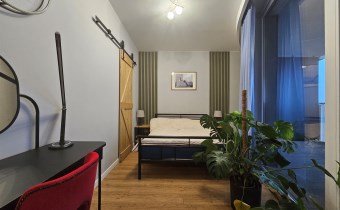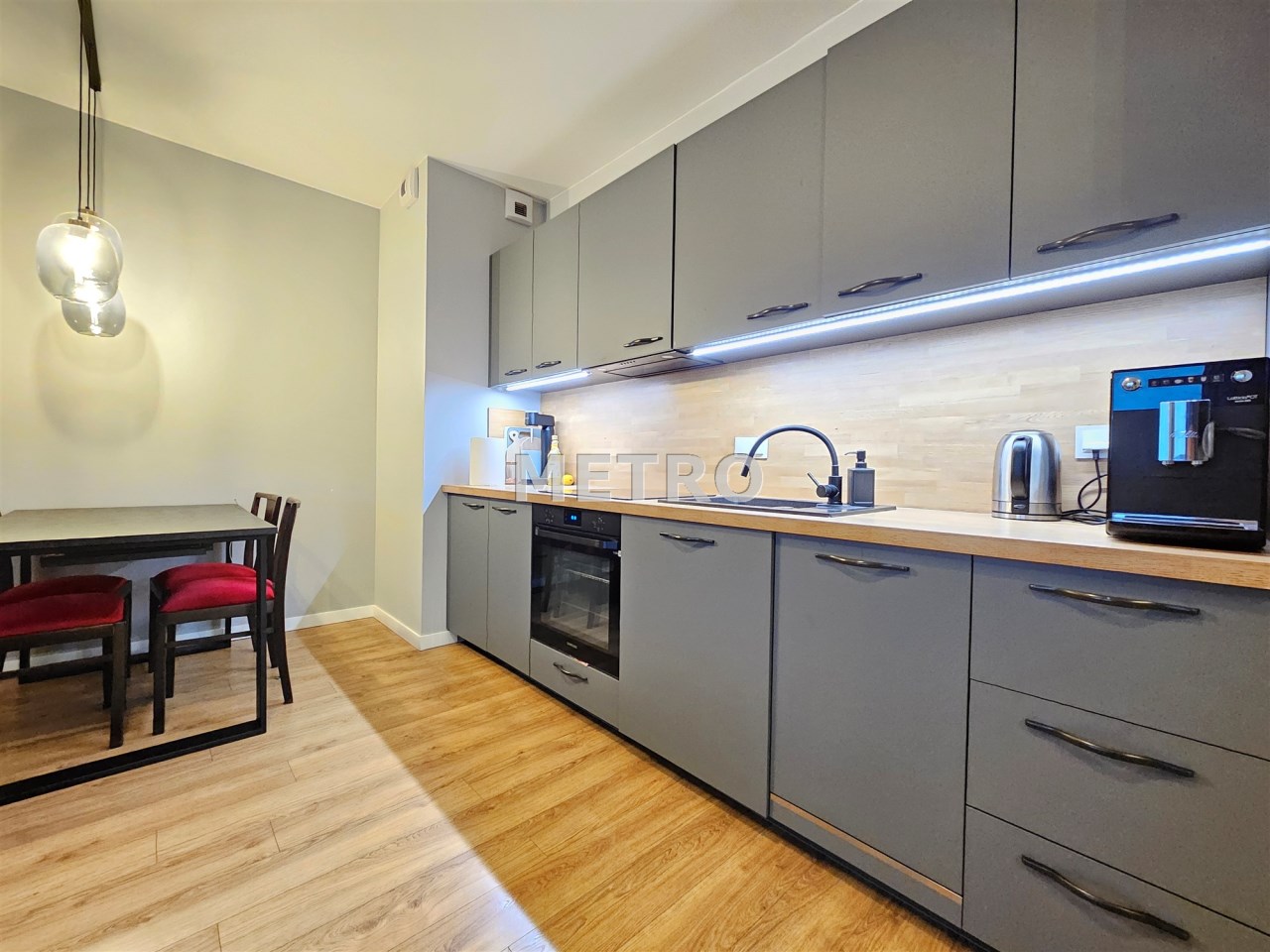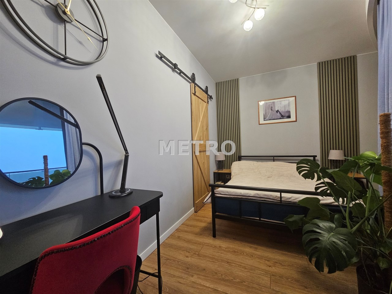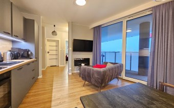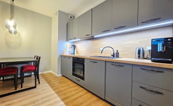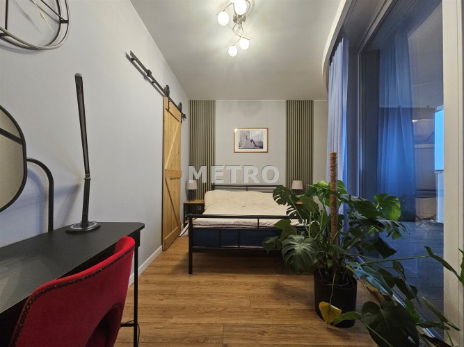 Wnętrze obejmuje salon z aneksem kuchennym (wyposażownym we wszystckie niebędne sprzęty agd, sypialnię z garderobą, łazienkę z wc. Do mieszkania przynależne miejsce postojowe w garażu podziemnym wraz z komórką lokatorską.