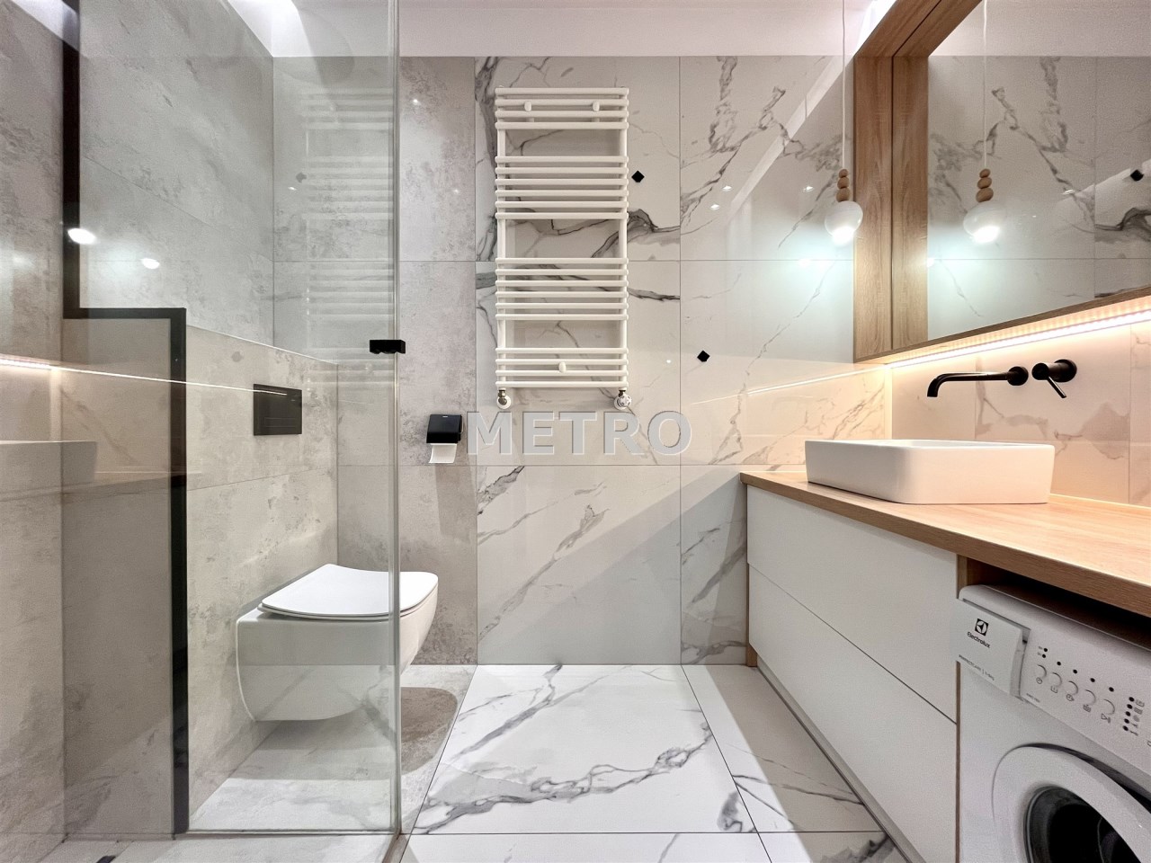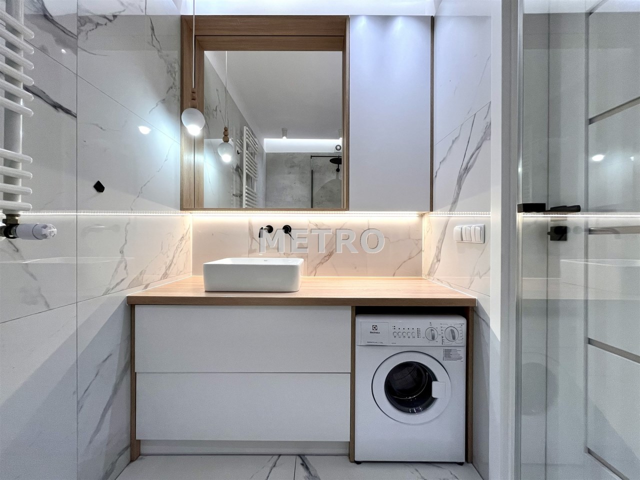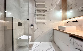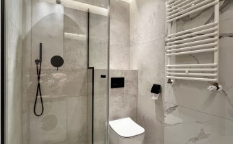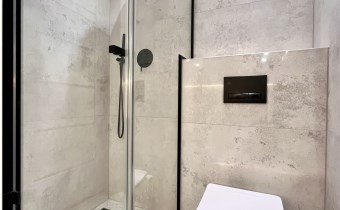 łazienka z kabiną prysznicową i WC (pralka na wyposażeniu),